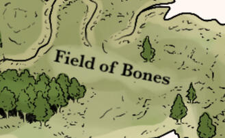 A field that spans as far as the eye can see, littered with stones poking out of the ground, all with different amounts of lines chiseled into them according to the number camp the deceased was at when they died. This terrain is very soft and uneven due to the constant digging and burying of bodies.