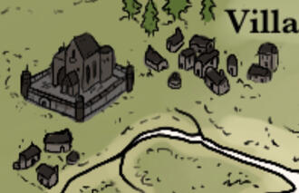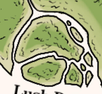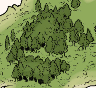 Forests that wrap around small hills and mountains north of the Stronghold. Smaller villages are within these trees.